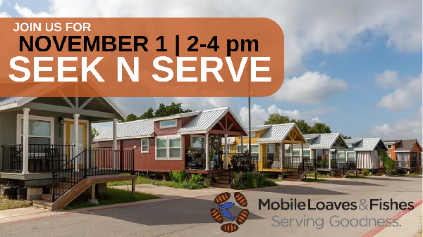 Join us Saturday, November 1 @ 2pm for a day of SERVING OTHERS WHOLEHEARTEDLY as we share the blessings of the Lord with residents of the Community First Village at Mobile Loaves & Fishes.